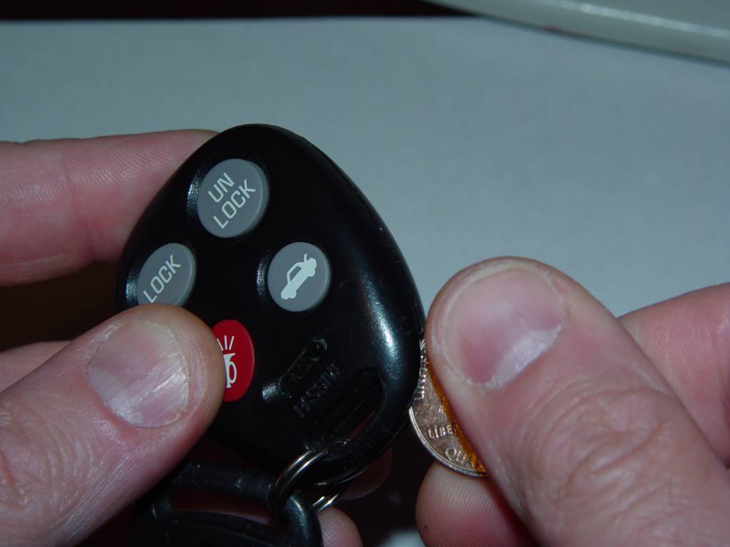 Pry the fob open with a quarter.